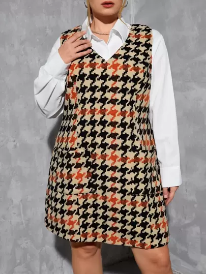SHEIN Privé Plus Houndstooth Print Sleeveless Dress Without Blouse - Multicolor - View 1
