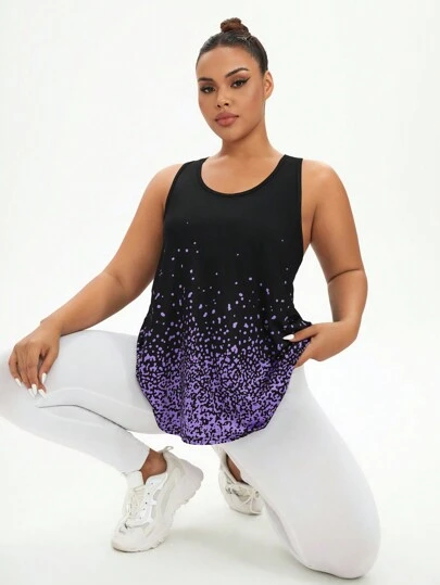 Easithlete Plus Size Full Graphic Floral Print Round Neck Sports Tank Top - Multicolor - View 1