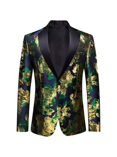 Plus Size Men Floral Jacquard Blazer Suit Jacket For Party & Wedding - Green - View 1