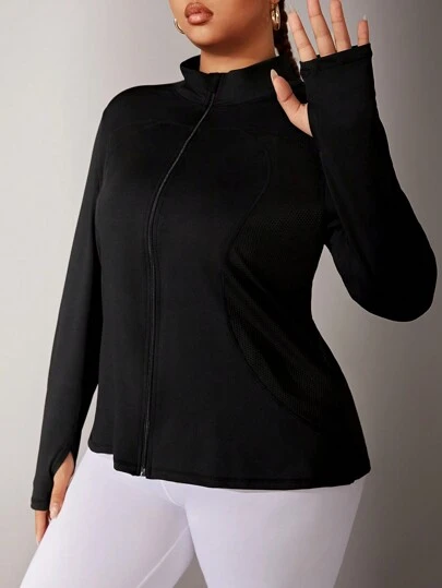 SHEIN Sports Plus Size Mesh Breathable Fitness Running Yoga Training Sports Jacket - Black - View 1