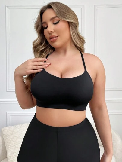 Plus Size Seamless Spaghetti Strap Wireless Bra - Black - View 1