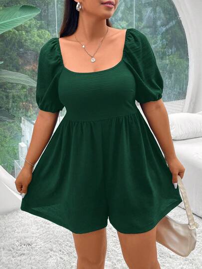 SHEIN EZwear Plus Size Solid Color Fashion Jumpsuit, Suitable For Summer - Green - View 1