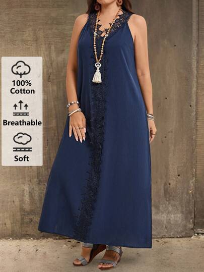 EMERY ROSE Plus Size Solid Color Spaghetti Strap Dress, Fashionable For Summer - White - View 7