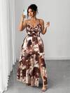 EMERY ROSE Plus Size Casual Solid Color Top And Floral Print Pants 2 Pieces Set Suitable For Going Out,Holiday Outfits For Women Fall Clothes,Flower/Spring/Summer/Vacation