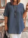 EMERY ROSE Women's Plus Size Simple Solid Color Short Sleeve Round Neck Blouse