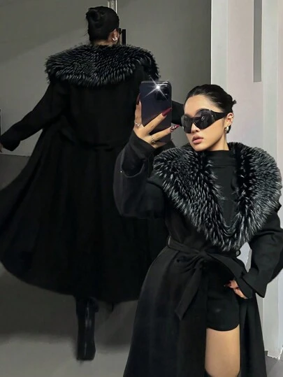 Flirla Plus Size Women's Solid Color Button Collar Coat, For Winter Fall Cloth For Women Autumn - Black - View 8