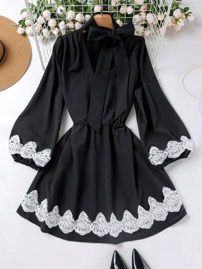 SHEIN Clasi Plus Size Women Color Block Ruffle Waist Midi Dress - Black - View 6