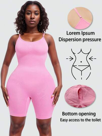 1pc Plus Size Full Body Shapewear Bodysuit For Women Tummy Control Body Shaper Thigh Slimmer Shorts Seamless Sculpting Underwear Open Crotch Bodysuit - Pink - View 1