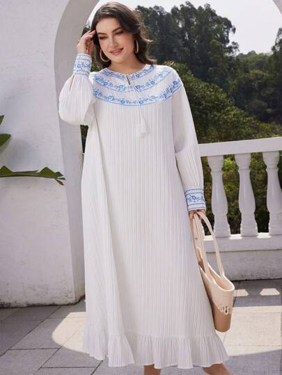 Seusyu Plus-Sized Women's Floral Printed Scarf Belted Arabic Clothing - White - View 1