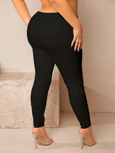 SHEIN SXY Plus Solid Elastic Waist Leggings - Black - View 4