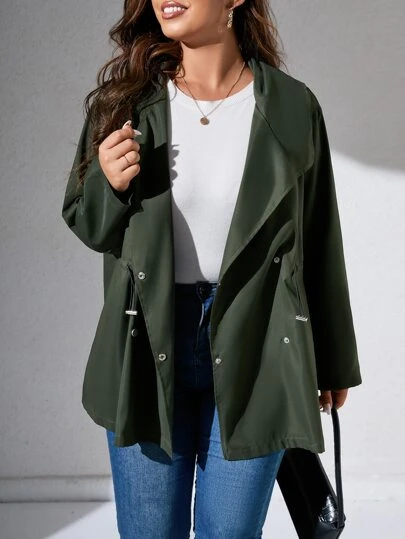 SHEIN LUNE Plus Waterfall Collar Double Breasted Coat - Dark Green - View 1