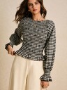 Poéselle Women's Solid Color Waist Tie Hollow Out Long Sleeve Sweater,Cute Top,Tops For Going Out,Casual Tops Women,Business Casual Woman,Classy Outfits For Women,Old Money Style Women,Fall Outfits For Women