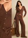 Poéselle 2pcs Rib Bodysuit & Pants Set, Comfy Loungewear Workout Set, Tracksuit, Casual Style, Long Sleeve Bodysuit And Wide Leg Pants, Autumn Winter Basic Essential, Baggy Pants, Long Sleeve, Winter Clothes