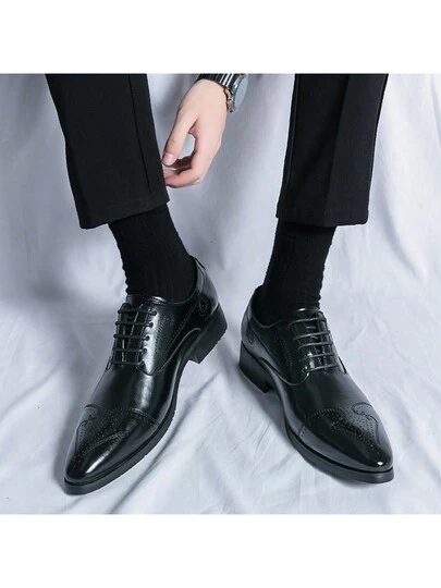 Pointed Toe Plus Size Business Formal Pu Leather Shoes For Men - Black - View 1