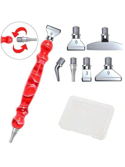 Polyresin Diamond Painting Pen Kit With 6 Interchangeable Metal Tips, DIY 5D Diamond Art Tool Set - Multi-Purpose Pickup & Nail Art Application Accessories With Storage Box (1 Set) - Multicolor - View 1