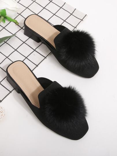 Pom Pom Decor Mules - Black - View 1