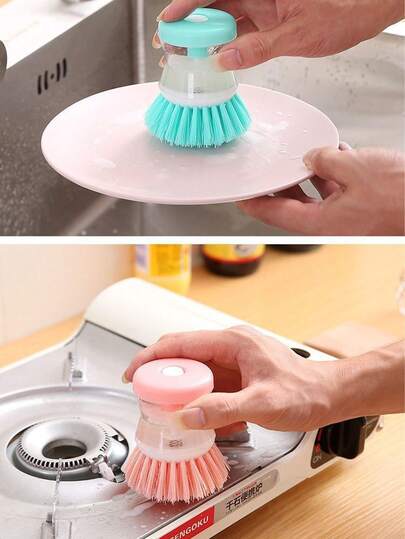 1pc Random Color Soap Dispensing Brush, Automatic Refillable Kitchen Cleaning Brush For Dishwashing And Pot Scrubbing - Pink - View 1