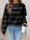SHEIN LUNE Casual Retro Striped Cozy Print Pattern Loose Fit Crew Neck Long Sleeve Sweatshirt For Women, Comfortable For Autumn/Winter