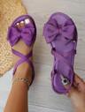 Women's Fashion Bowknot Sandals, Criss-Cross Strap Design Flat Sandals With Elastic Band, Comfortable Summer Outdoor Sandals