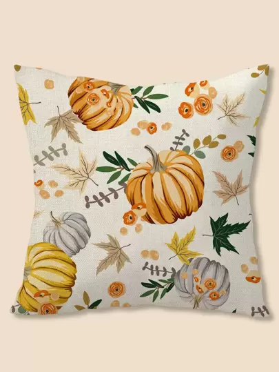 Pumpkin Print Cushion Cover Without Filler - Multicolor - View 1