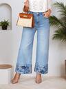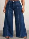 Plus Size Women's Dark Blue Distressed Denim Long Pants - Relaxed Fit