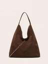 1pc Solid Color Suede Fabric Shoulder Bag For Women, Vintage Fashion Large Capacity Handbag With Dual Handles And Snap Closure, Suitable For Travel, Shopping, Dating, Women's Gift, Suitable For Teenage Girls, College Students, And Office Ladies, Great For Office, School, Work, Business, Commuting, Outdoor, Travel, Picnic, New Fall Fashion 2025 For Women