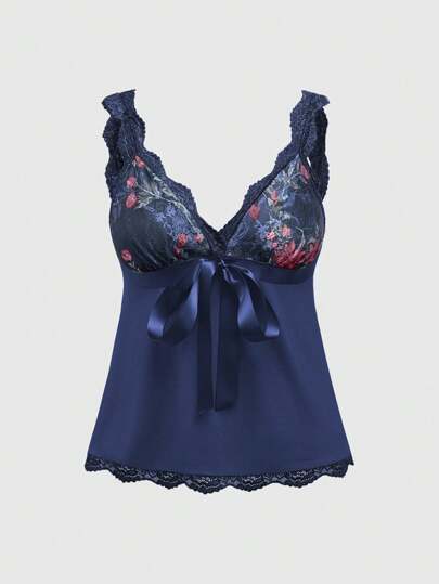 ROMWE Fairycore Women Lace Rose Graphic Patchwork Camisole - Blue - View 1