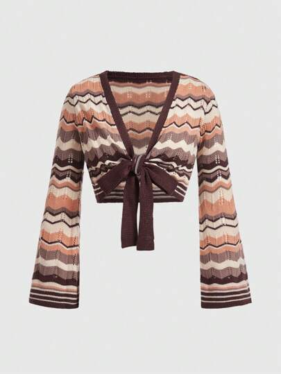 ROMWE Fashionable Knitted Cardigan Sweater - Multicolor - View 1