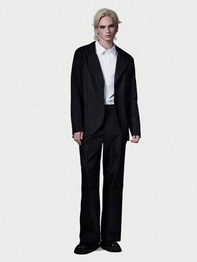 ROMWE MEN Goth Guys Lapel Neck Single Breasted Blazer & Suit Pants - Black - View 1