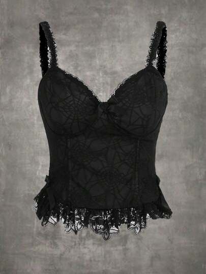 ROMWE Goth Plus Size Women's Spider Web Lace Camisole Tank Top - Black - View 1
