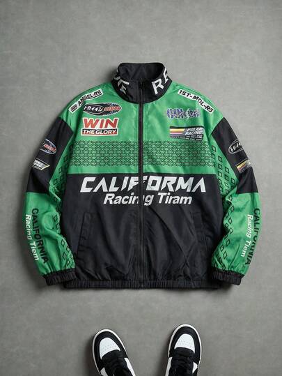 ROMWE MEN Men's Letter Print Long Sleeve Zip Front Loose Casual Jacket - Multicolor - View 1