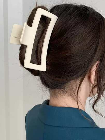 Rectangle Simple Casual Business Hair Claw,Hair Accessories,Claw Clips,Hair Jaw Clip,Hair Clutch, School Stuff, College Fall Winter Hair Clip For Vacation Outfits Woman - Beige - View 1