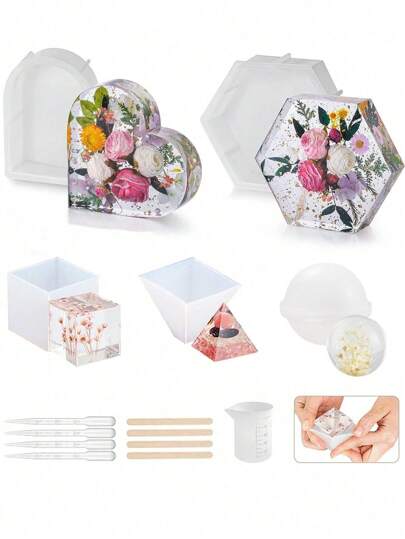 Resin Molds Silicone Kit Large Epoxy Resin Mold For Flowers Preservation Home Deco DIY Art, Silicone Molds Including Square, Heart, Sphere, Pyramid, Cube And Tools - Silicone Mold - View 6