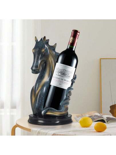 Resin Tabletop Wine Bottle Holder, Horse Statue Wine Rack, Wine Storage Display Rack, Blue+Gold, For Store Wine Bottles, Wine Glasses - Blue - View 1