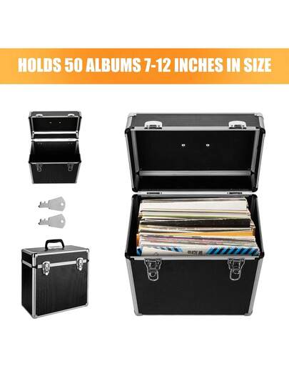 Retro Silver Vinyl Record Storage Box With Lock - Multifunctional CD & Record Album Case, Durable Tool Box Design For Safekeeping - Black - View 1
