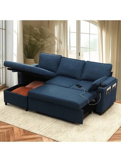 Reversible Sleeper Sofa 3-In-1 Pull Out Sectional Sofa Bed L-Shaped Couch With Storage Chaise - Blue - View 1