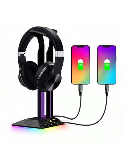 Rgb Headphone Stand With Dual Usb Ports - Black - View 1
