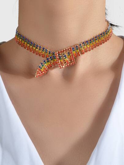 Rhinestone Belt Design Necklace - Multicolor - View 1