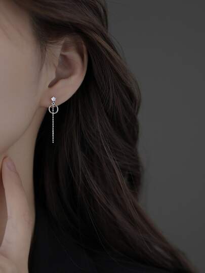 Rhinestone Decor Geometric Mismatched Drop Earrings - Silver - View 1