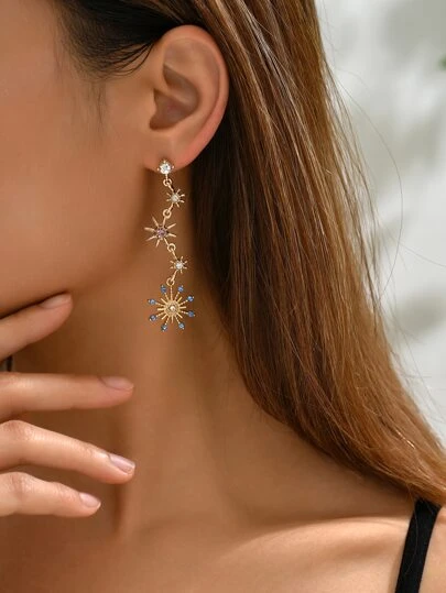 Rhinestone Sun Drop Earrings - Yellow Gold - View 3