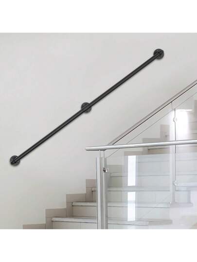Round Galvanized Wall-Mounted Handrails Iron Pipe 153cm/5ft Handrail Stair Railing - Black - View 7