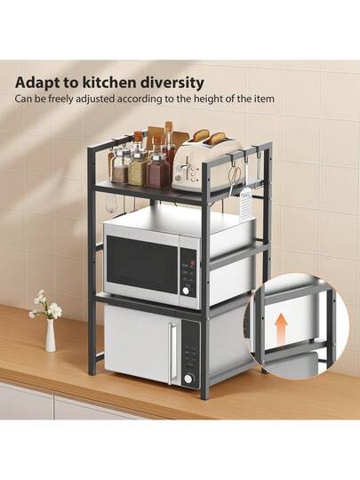 Royalswill Expandable Microwave Rack, Organiser, 2 Tier Microwave Rack Storage Rack Kitchen Corner Rack Desktop Printer Rack, Baker's Rack - Black - View 1