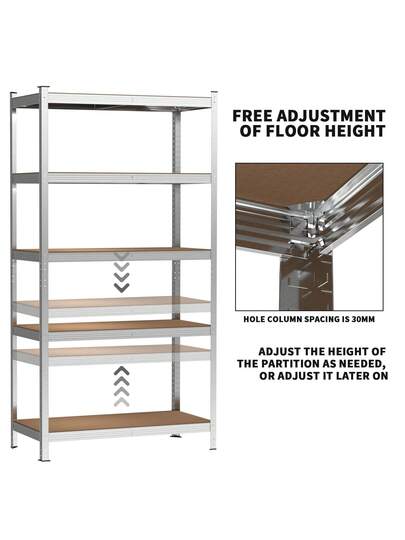 Royalswill Heavy-Duty Utility Shelving, 150 Cm/180 Cm Screwless Storage Rack, Industrial Storage Rack, Supermarket Display Rack, Super Strong Load-Bearing Capacity, Adjustable Storage Layers, Suitable For Living Rooms, Kitchens, Garages, Workshops, Supermarkets And Shops. - Silver - View 12