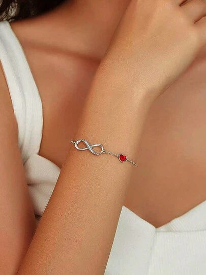 S925 Sterling Silver Bracelet Infinity Bracelet Heart Shaped Stone Bracelet - Red - View 1