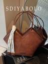 Retro Suede Tote Bag, Large Capacity Shopping Bag, Fashion Shoulder Bag For Daily Use & Work