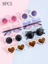 8PCS/1pc Kids' Little Bear Shaped Fashion Glasses For Summer, Perfect For Daily Wear. Kids`S Little Bear Shapes&Flower Shapes Fashion Glasses For Summer, Suitable For Daily Use