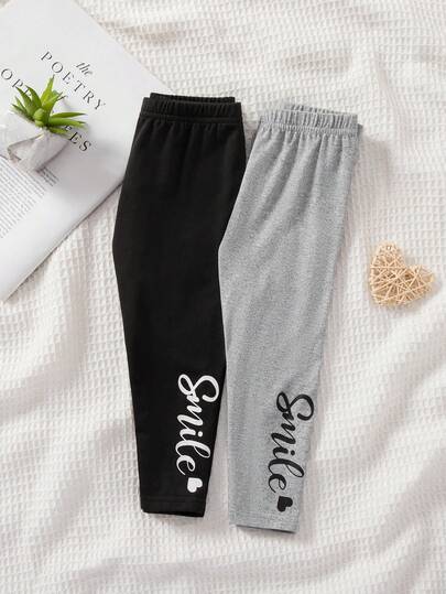SHEIN 2pcs Baby Girl Casual Knit Letter Pattern Elastic Waist Pants - Multicolor - View 1