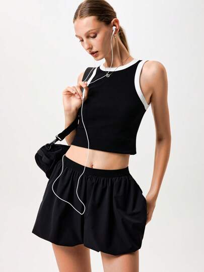 Fluxe Contrast Trim Tank Top - Black - View 1