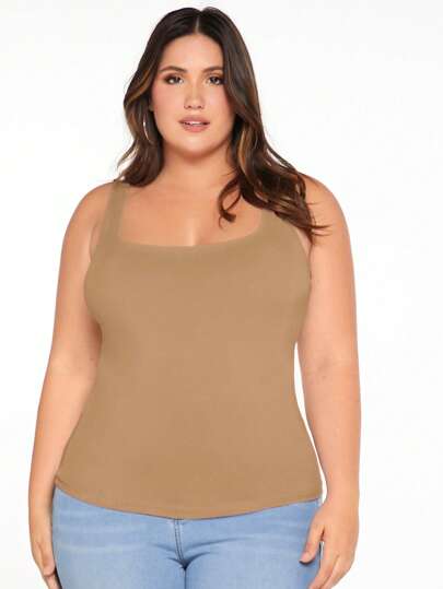 SHEIN BASICS Plus Solid Tank Top - Camel - View 1