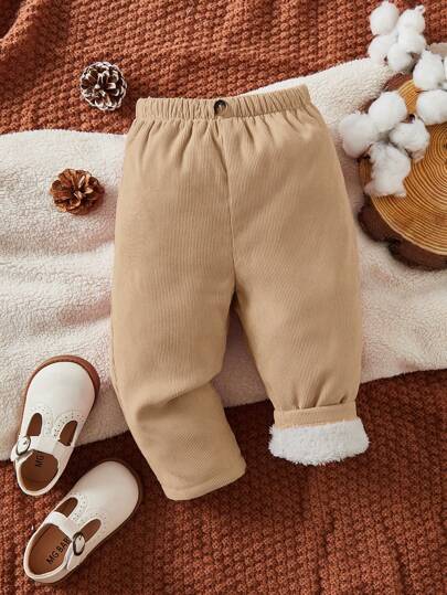 SHEIN Leap Crew Baby Girl Button Front Thermal Trousers - Khaki - View 1